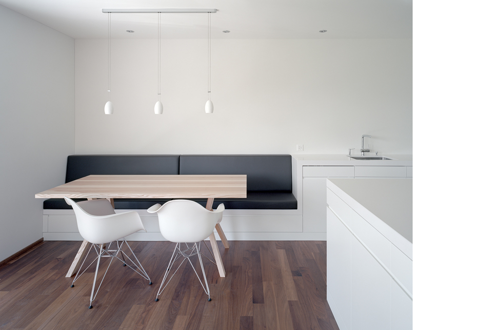 Der Ausbau der Wohnung in Oberägeri wird durch die Küchenmöbel definiert. Der offene Wohn- Ess und Küchenraum wird mit dem Küchenmöbel organisiert und strukturiert. Weil die Küche praktisch im Wohnzimmer steht, wurden die Materialien, Konstruktionsprinzipien und Details so gewählt, dass die Küche als eigentliches Möbel wahr genommen wird.