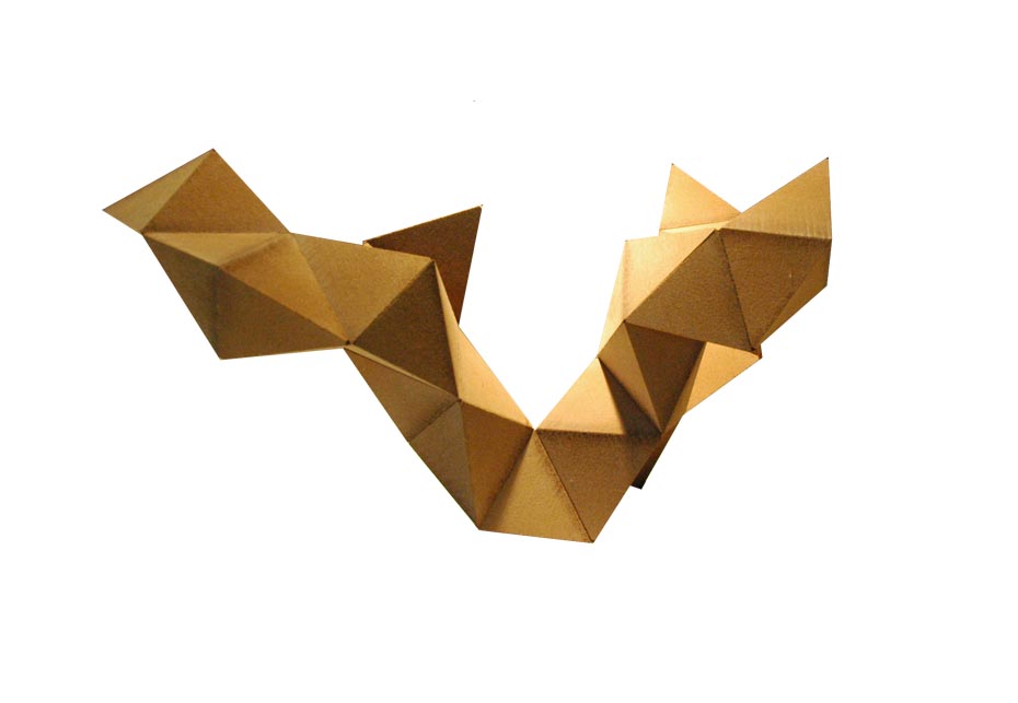 Beitrag für die Gruppenausstellung viaZUG im Haus Zentrum, Zug. Mit TETRA:EDIS 2 werden die raumfüllenden Tetraederkonstrukte aus Karton zu kleinen, handlichen Objekten aus Holz. In diesem ersten Falle MDF, eine mitteldichte Faserplatt, ein Material, welches häufig von Schreinern für Innenausbauten benutzt wird. Das Material spricht von ähnlicher Roh- und Einfachheit wie der Wellkarton bei TETRA:EDIS. In einer weiteren Versuchsserie werden unterschiedliche Hölzer bezüglich deren Haptik und aussehen getestet.
